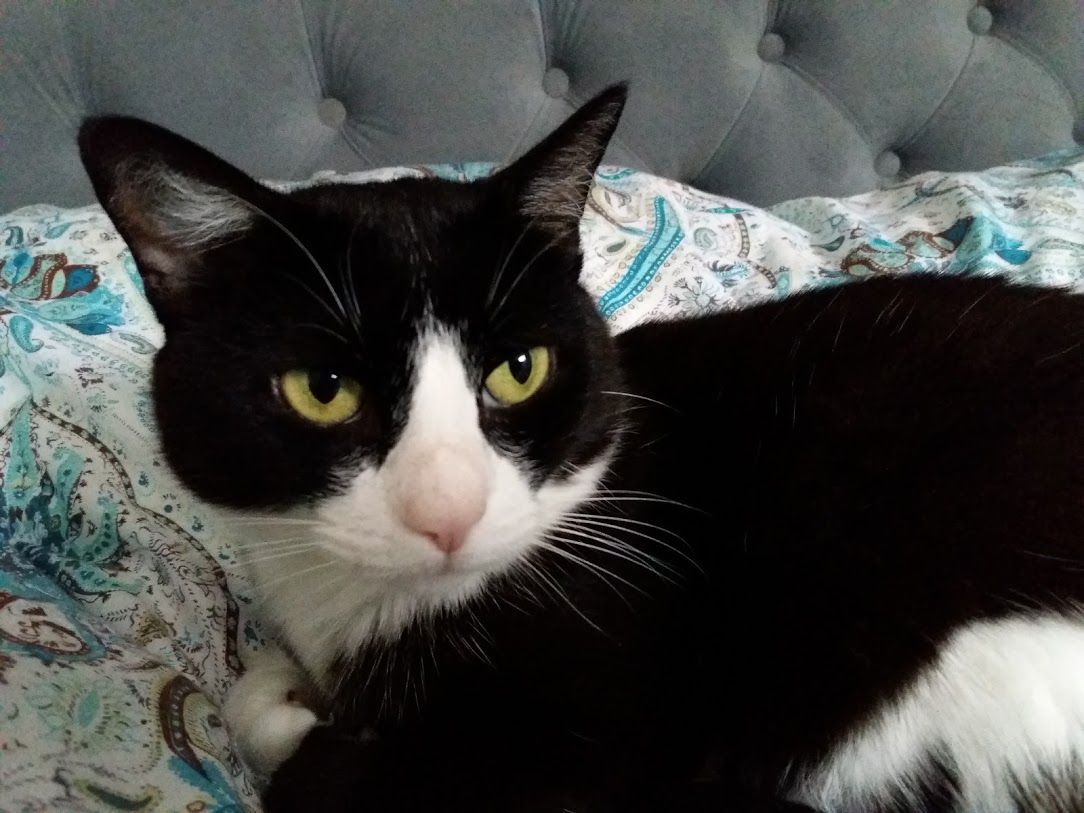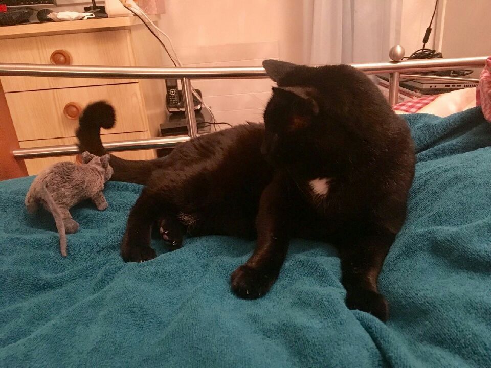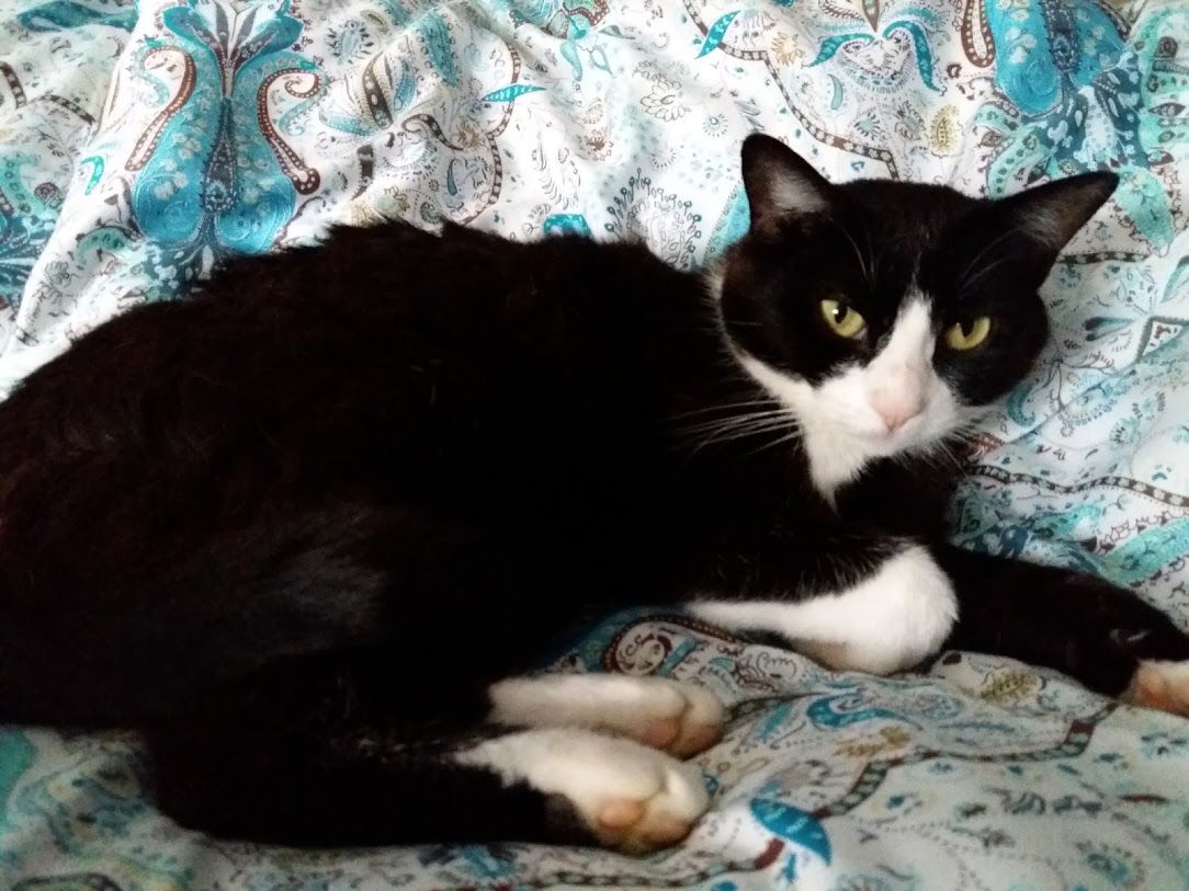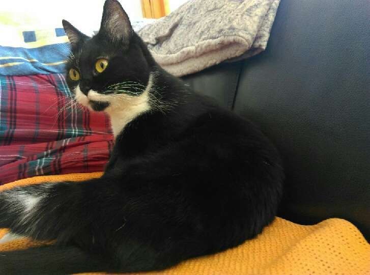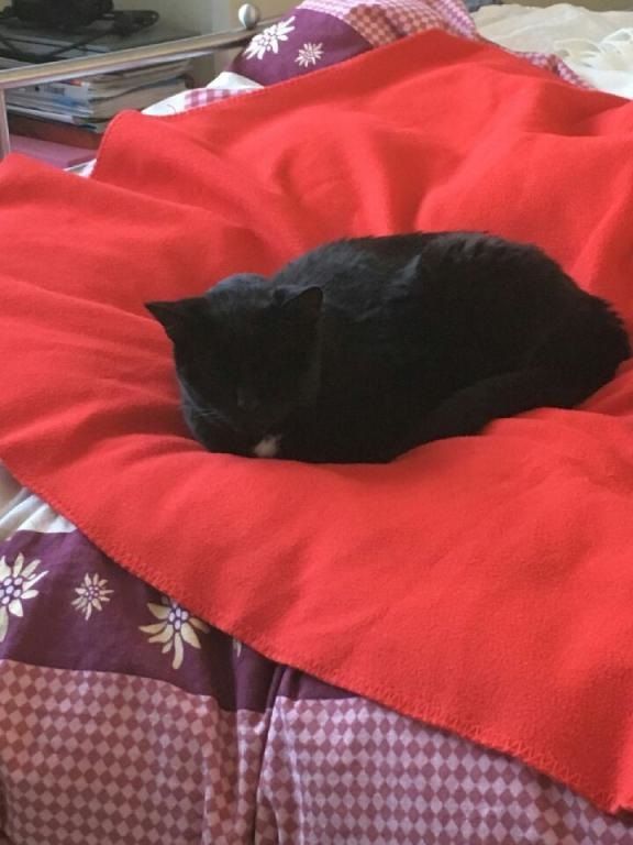 Der ca. 12-15 jährige Katzenopa Onyx kam als Findelbüsi zu uns. Er ist Mitte September abgemagert bei den Findern in unserer Nachbargemeinde zugelaufen und wollte nicht mehr weg. Nachdem er offensichtlich von seinen Besitzern nicht vermisst wurde, durfte er am 26. November in sein neues Zuhause umziehen, wo er sich schnell eingelebt hat und am liebsten bei seinem neuen Personal das Bett in Beschlag nimmt.