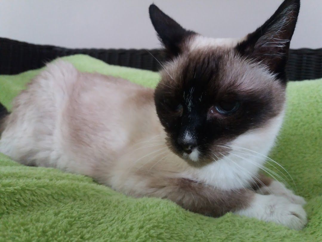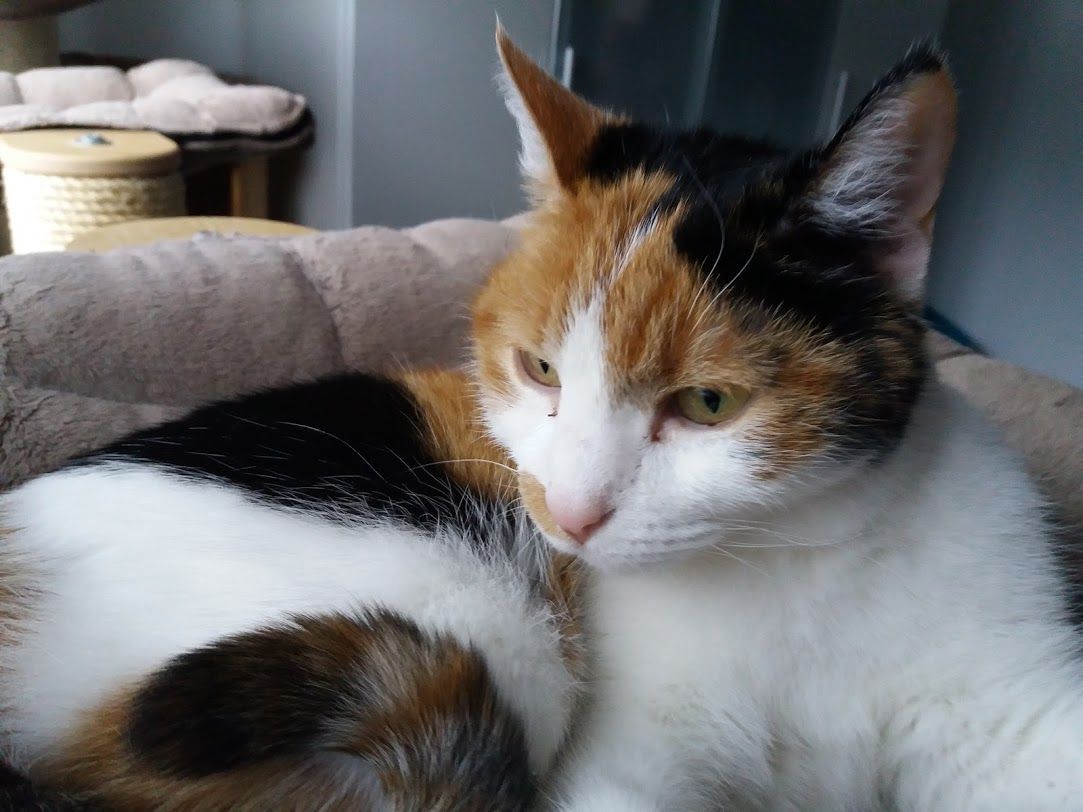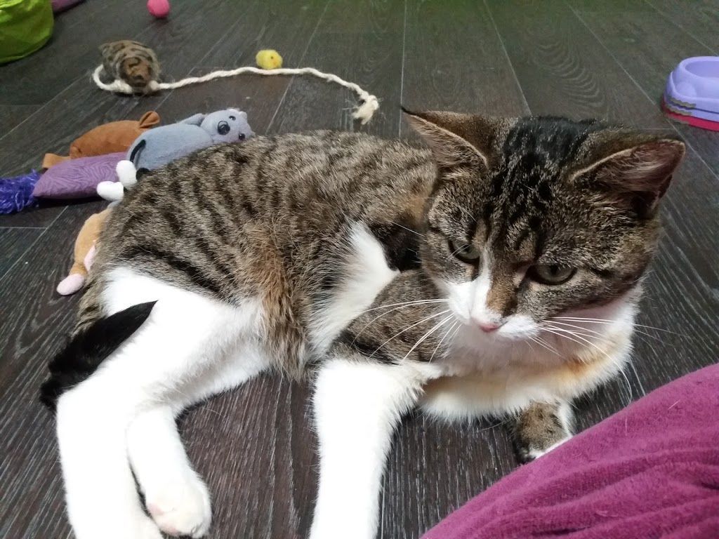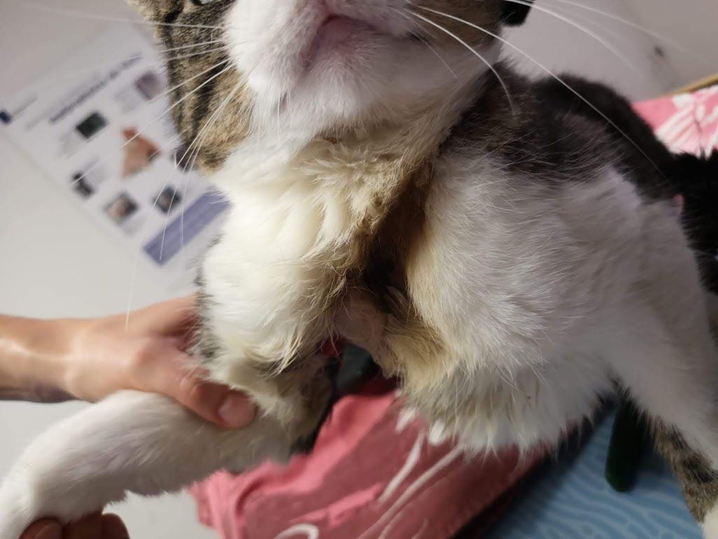 Die bereits ältere Katzendame Polina kam als Findelbüsi zu uns. Sie lief Ende Mai in schlechtem Zustand beim Finder zu und ging nicht mehr weg, weshalb wir sie nach erfolgter Fundmeldung Mitte Juni zu uns holten. Polina war total dehydriert und sehr abgemagert, litt unter einer massiven Schilddrüsenüberfunktion und wog nur noch knappe 2 kg. Trotz Chip konnten ihre Besitzer nicht ausgefindig gemacht werden, da er in keiner Datenbank registriert war und sich die Besitzer auch auf die Fundanzeige nicht meldeten.