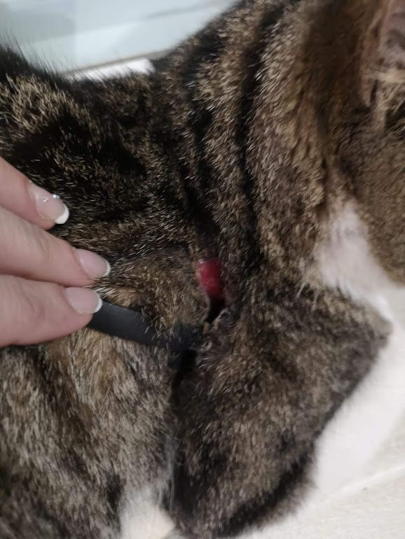 Kater Pino kam am 8. September als Findelbüsi zu uns resp. umgehend notfallmässig zum Tierarzt, nachdem wir ihn abends bei der Melderin mittels Falle einfangen konnten. Die Melderin fütterte den Kater bereits seit eineinhalb Monaten und wollte warten, bis er so zutraulich ist, dass sie ihn von Hand nehmen kann, dies obwohl sie bemerkte, dass der Kater verletzt ist und sein rechtes Vorderbein kaum benutzte. Weil die Melderin unsere Fallenaktion für übertrieben hielt und uns keinen Zugang zu ihrem Sitzplatz gewähren wollte, wo der Kater zum Fressen kam, mussten wir uns sogar die Bewilligung bei der zuständigen Regionalpolizei einholen, welche uns versicherte, dass wir in diesem tierschutzrelevanten Notfall handeln dürfen und sonst auf ihre Unterstützung zurückgreifen dürfen. Die Drohung mit der Polizei zu erscheinen wirkte Wunder und die Melderin liess uns dann gewähren. Dies war auch dringendst notwendig. Als der Kater kurz vor 22 Uhr in die Falle ging, zeigte sich schnell, dass ein eingewachsenes Halsband unter der Achsel seines rechten Beines zu einer massiven offenen und schon völlig vereiterten Wunde geführt hat. Wir hatten Glück, dass meine Freundin Andrea von der Vettrust AG in Wettingen an diesem Abend Notfalldienst hatte und wir mit dem Kater direkt zu ihr in die Praxis fahren durften. Dort wurde er von seinem Halsband befreit und erstversorgt. Pino verbrachte viele Wochen in der Tierarztpraxis, da er mehrfach operiert und die Wunde täglich kontrolliert und gereinigt werden musste. Da es sich um eine schwer zugängliche Stelle handelte und Pino die grosse Wunde auch bei jeder Bewegung schmerzte, war dies für ihn je länger je mehr ein Graus. Pino war aber ein riesiger Goldschatz und liess die Prozedur jeweils über sich ergehen. Nachdem es ihm besser ging, wurde er auch noch kastiert. Wir bedanken uns an dieser Stelle bei Esther Geisser von NETAP für die Übernahme eines grossen Teils der doch erheblichen Tierarztkosten, wie auch bei den neuen Haltern von Pino, bei welchen er am 15. Dezember endlich einziehen durfte. Auch sie haben durch ihre grosszügige Spende an NETAP und uns einen grossen Beitrag geleistet. Ein grosses Dankeschön auch an die TA Praxis für die liebevolle Pfl