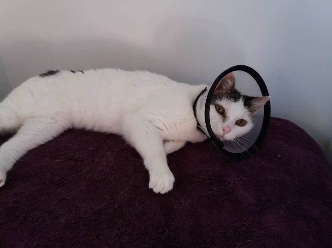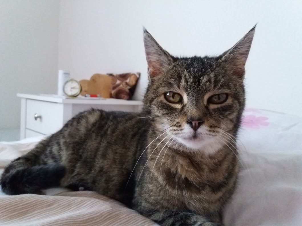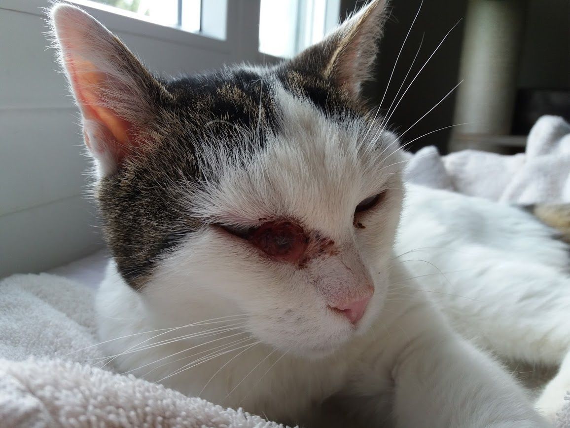 Katzendame Joy kam Anfang Juli als Findelbüsi zu uns. Wir wurden über eine STMZ-Anzeige der Finderin auf sie aufmerksam. Wir boten der Melderin unsere Hilfe betreffend Chipabklärung an. Als uns allerdings das im Inserat fehlende Bild der Katze zugesandt wurde, war uns aufgrund des Zustandes klar, dass das Büsi dringend zum Tierarzt musste. Nachdem die Samtpfote zum Fressen in der Wohnung der Melderin auftauchte, konnten wir sie abholen. Da die Zubildung bereits fast das ganze Auge bedeckte, Joy massiv störte und bereits auch infektiös eitrig war, wurde Joy einige Tage später operiert. Leider wurden auch an einem der Hinterbeine noch drei weitere Zubildungen entdeckt, welche nach erfolgreicher Entfernung des Tumores am Auge einige Wochen später auch noch entfernt wurden. Leider ergab die Untersuchung, dass es sich bei allen Tumoren um bösartige Fibrosarkome handelt. Wir hoffen aber, dass Joy nun doch noch einige Jahre ein glückliches Katzenleben führen darf. Da sie anscheinend von ihren urspünglichen Besitzern nicht gesucht oder vermisst wird, durfte Joy am 12. August bei ihrer neuen Familie einziehen. Diese hatte in den vergangenen Jahren bereits zweimal von uns Notfälle aufgenommen, mit welchen sie sehr glücklich waren. Wir sind sehr glücklich und dankbar, dass nun auch Joy bei ihr ein so liebevolles Zuhause gefunden hat und wünschen allen noch viele gemeinsame glückliche und gesunde Jahre.