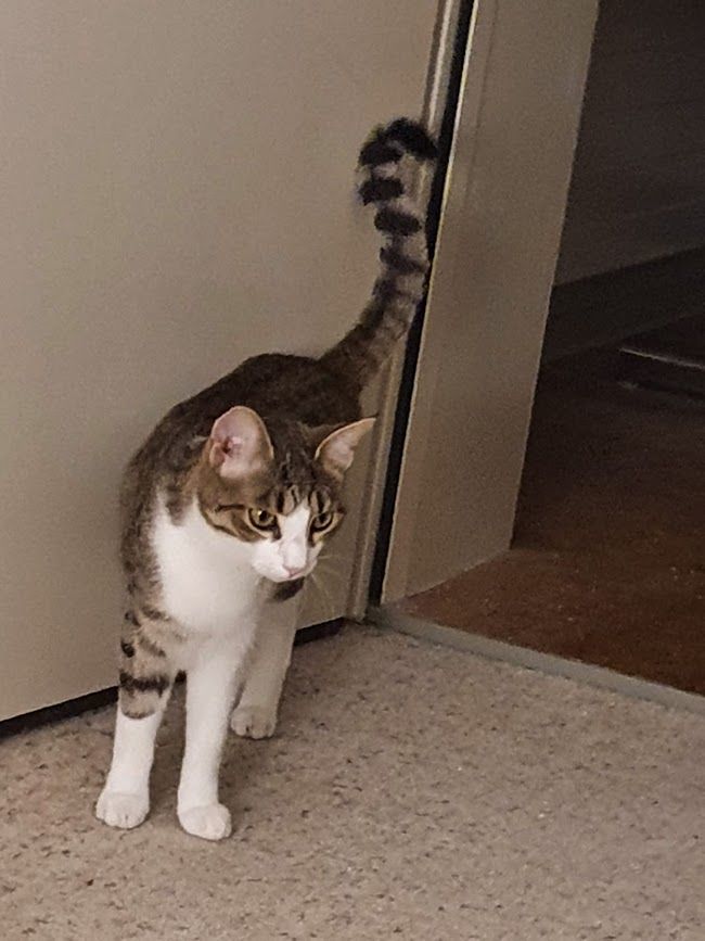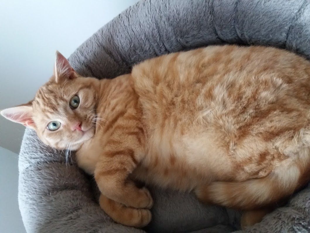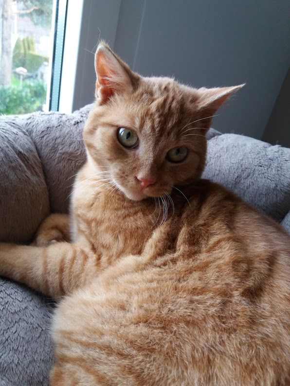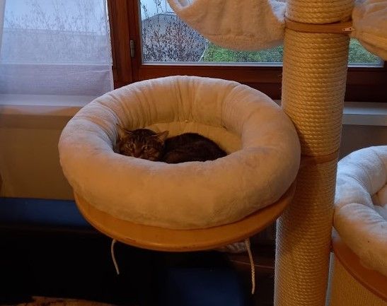 Der noch sehr junge Kater Mauz (ca. 1.8.2019 geb.) ist einer Familie Anfang November 2019 zugelaufen. Er war anfänglich sehr scheu, liess sich füttern und schlief vor dem Fenster in einem Bettchen. Mauz fehlt ein Hinterbein und sie machten sich wegen des Handicaps und der gefährlichen Wohnlage grosse Sorgen, dass dem jungen Kater etwas passieren könnte. Am 25. November wagte sich Mauz das erste Mal ins Haus und die Familie ergriff sofort die Gelegenheit, ihn im Haus einzuschliessen und uns zu benachrichtigen, damit wir ihn abholen konnten.
