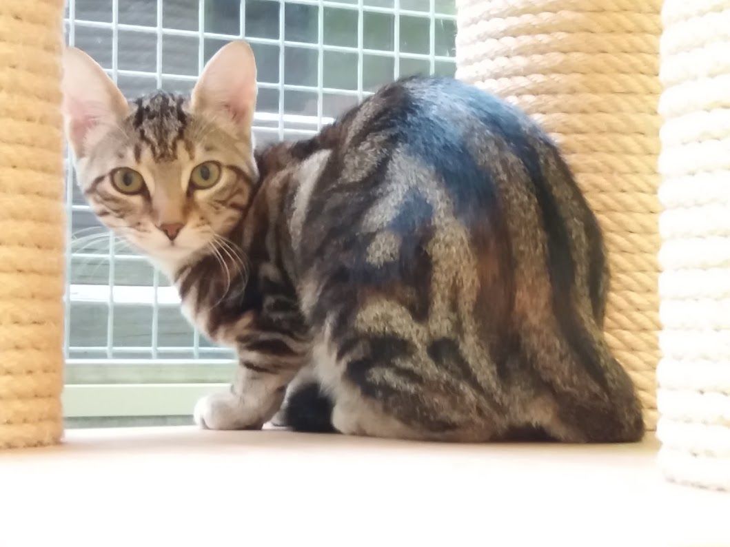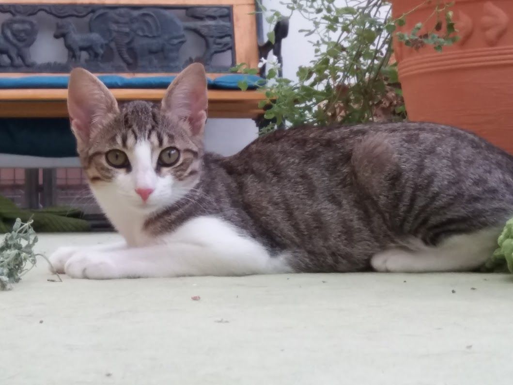 Mauz zeigte sich bei uns sehr sozial mit anderen Katzen blieb uns gegenüber aber recht vorsichtig. Leider verlief die erste Platzierung anders als wir es uns wünschten. Die dort vorhandenen Kätzinnen hat vor Mauz Angst und eine der beiden fing an unsauber zu werden, weshalb wir uns schweren Herzens für eine Rücknahme entschieden.