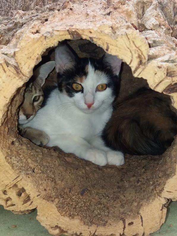 Unser Mädesltrio Sanja, Sabbia und Sushi kam im zarten Alter von ca. 4 Monatenim Juli 2019 zusammen mit ihrem Mami Finja zu uns. Die Katzenfamilie wurde auf einem Hof mit vielen vernachlässigten Katzen eingefangen. Da die drei Ladies lange sehr scheu waren, dauerte es lange, bis der passende Platz gefunden wurde. Am 27. Juni dieses Jahres war es dann endlich soweit und sie durften in ihr neues Zuhause umziehen. Suhsi und Sabbia haben sich schneller eingelebt, während die schon bei uns scheueste Sanja noch etwas mehr Zeit benötigt um Vertrauen zu fassen.