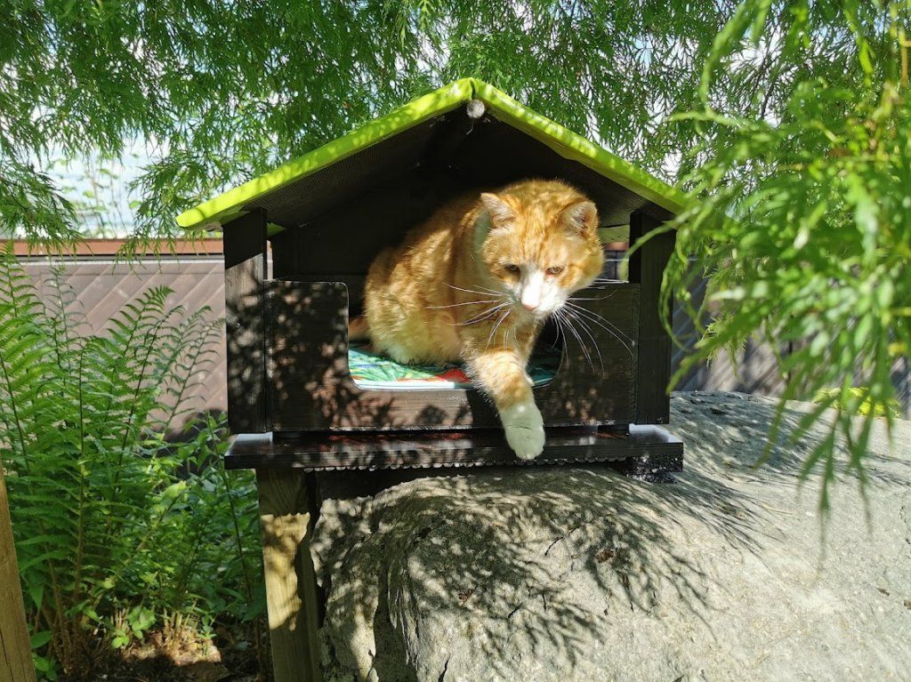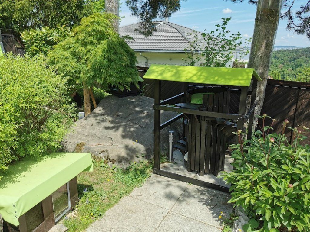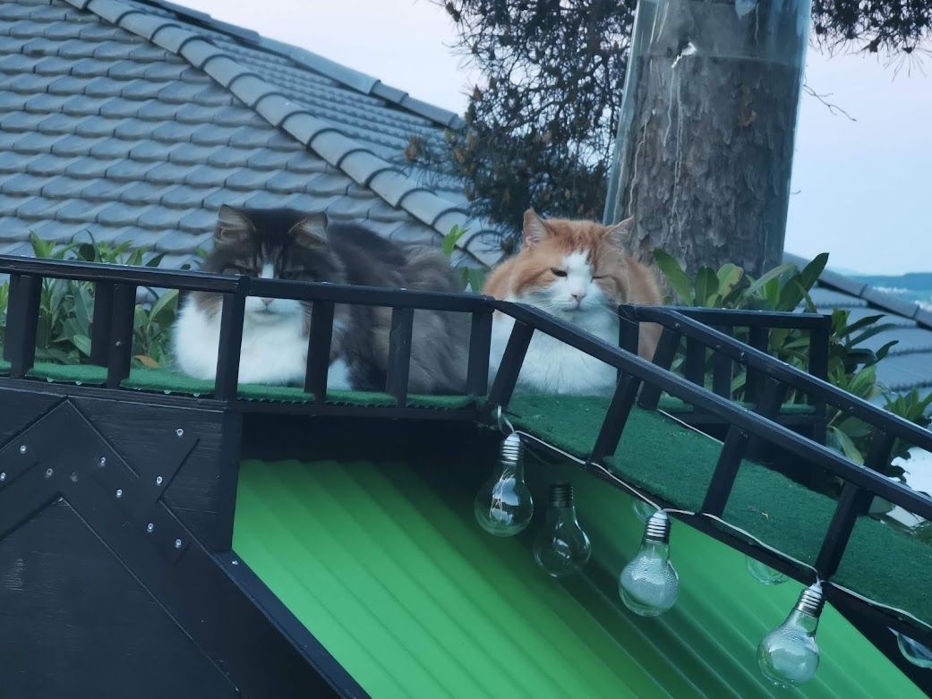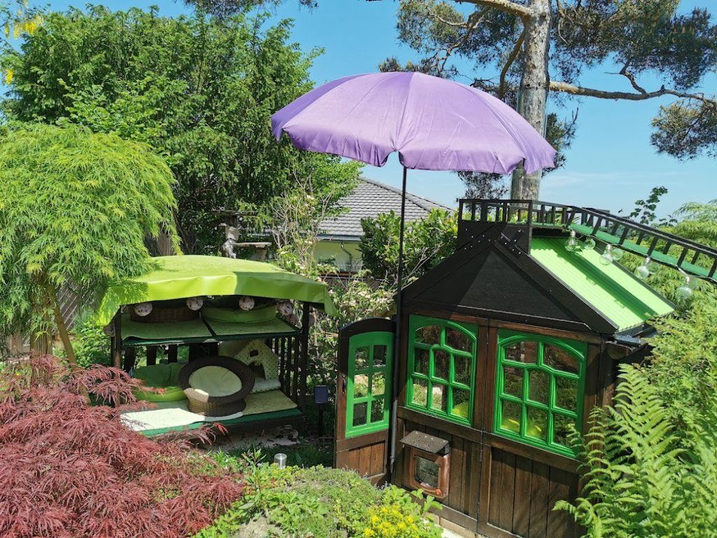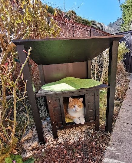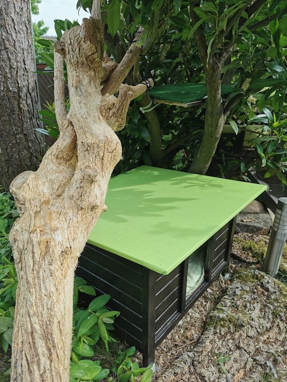 Endlich ist das Gartenparadies für unsere Katzen fertig gestellt. Es wurden viele Stunden Arbeit investiert, viel geschliffen, gestrichen und geschraubt um unseren Samtpfoten einen richtigen Abenteuerspielplatz mit vielen regen- und windgeschützten Plätzen und Häuschen, Kletterparcour und lauschigen Plätzchen zum Chillen zu bieten.