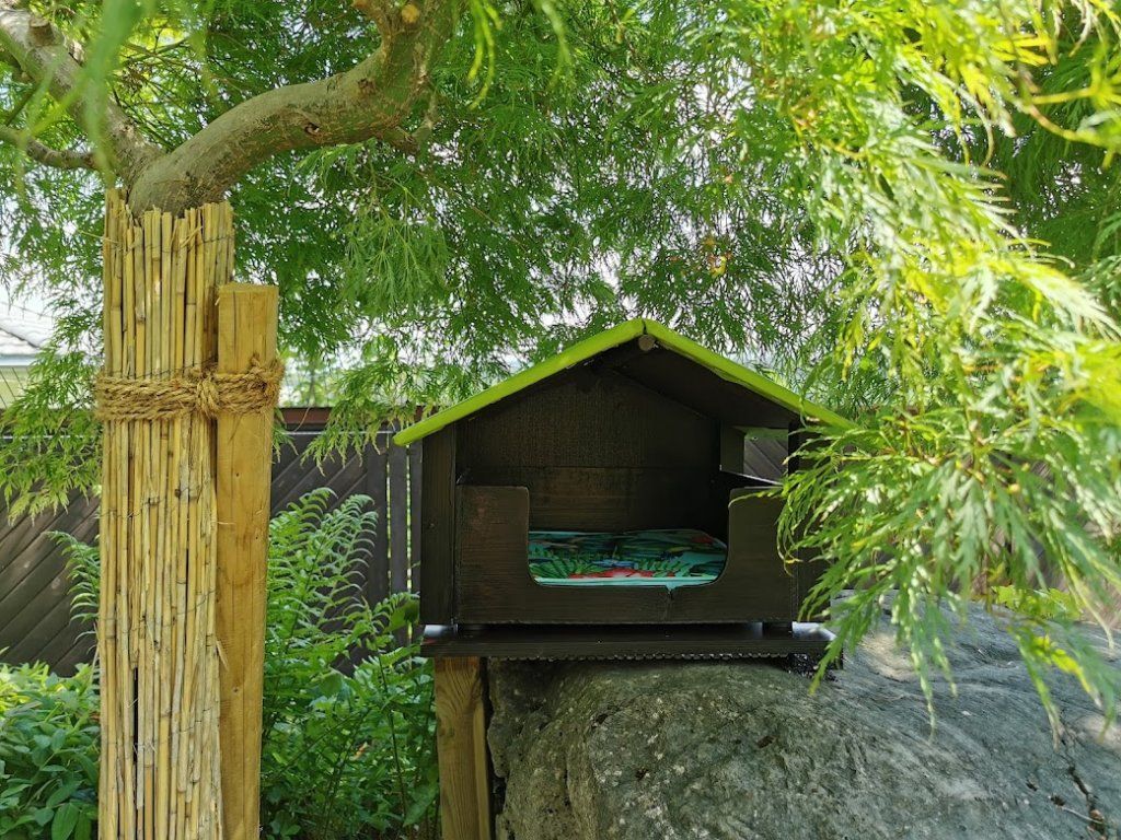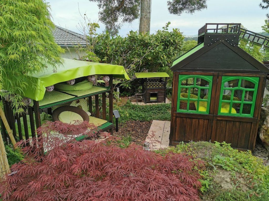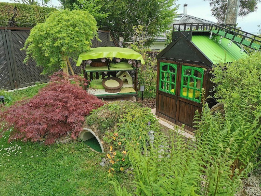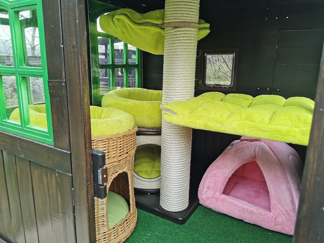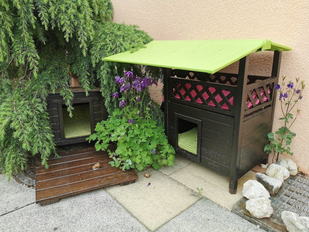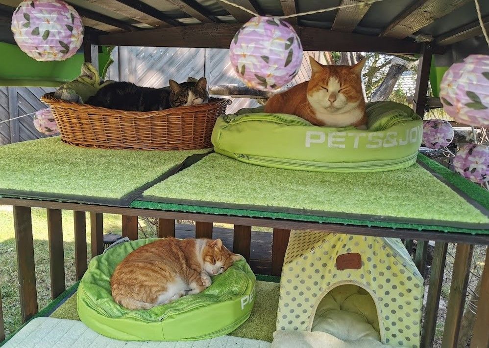 Endlich ist das Gartenparadies für unsere Katzen fertig gestellt. Es wurden viele Stunden Arbeit investiert, viel geschliffen, gestrichen und geschraubt um unseren Samtpfoten einen richtigen Abenteuerspielplatz mit vielen regen- und windgeschützten Plätzen und Häuschen, Kletterparcour und lauschigen Plätzchen zum Chillen zu bieten.