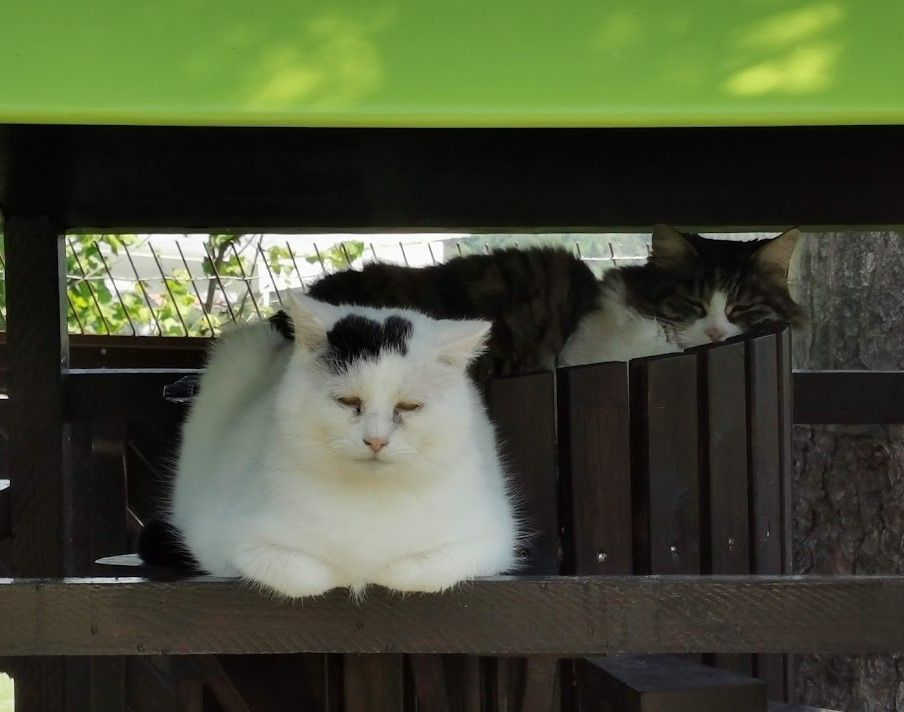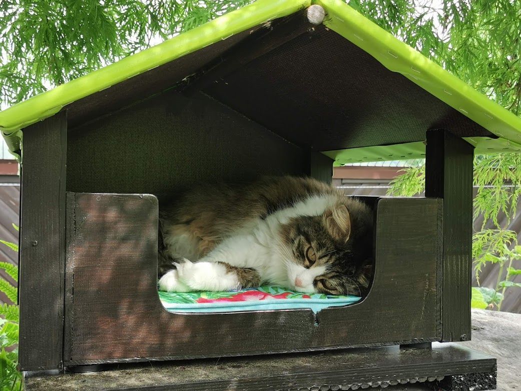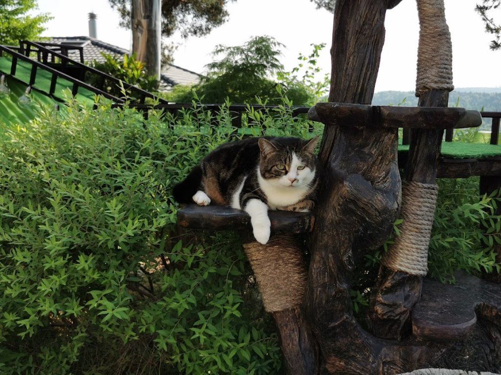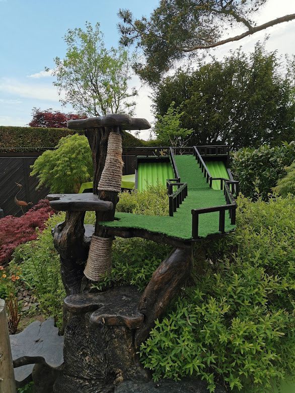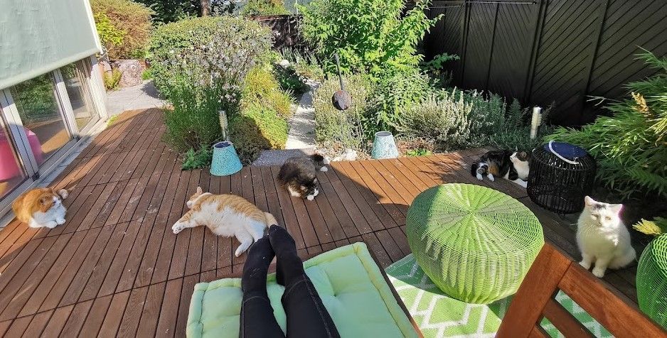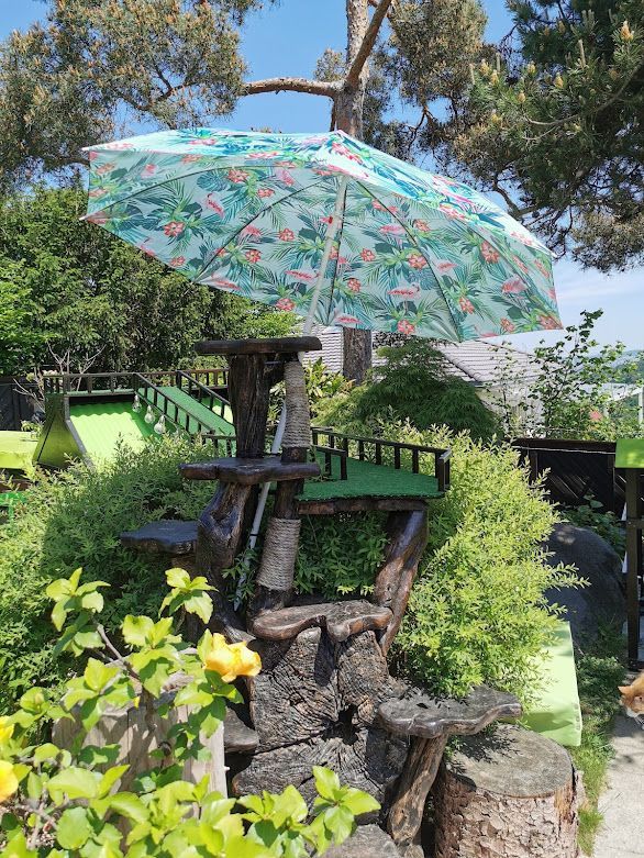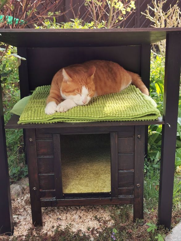 Endlich ist das Gartenparadies für unsere Katzen fertig gestellt. Es wurden viele Stunden Arbeit investiert, viel geschliffen, gestrichen und geschraubt um unseren Samtpfoten einen richtigen Abenteuerspielplatz mit vielen regen- und windgeschützten Plätzen und Häuschen, Kletterparcour und lauschigen Plätzchen zum Chillen zu bieten.