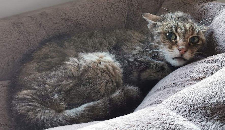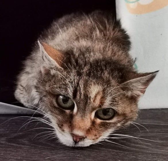 Die schon ältere Kätzin Anusha wurde uns am 24. September 2021 durch Naty's Tiere in Not übergeben. Anusha fristete ihr Dasein ebenfalls auf einem Bauernhof, zuletzt zusammen mit einer weiteren alten Kätzin. Die Bäuerin kümmerte sich nicht um die Katzen, einen Tierarzt hatten sie wohl noch nie gesehen. Eine Anwohnerin schritt endlich ein und brachte die beiden in die örtliche Tierarztpraxis. Leider kam für das Gspänli von Anusha die Hilfe zu spät. Es litt an einer wohl schon jahrelang andauernden Überfunktion der Schilddrüse, welche bereits zur Erblindung geführt hatte und auch der restliche gesundheitliche Zustand war derart desolat, dass die Tierärztin entschied, das Büsi zu erlösen. Auch Anusha war in keinem guten Zustand. Total verfilzt und nur 2,1 kg leicht. Anusha war anfänglich sehr eingeschüchtert, lebte sie all die Jahre hauptsächlich in einer Scheune mit einem Kartoffelsack als einzige Liegemöglichkeit, da dort kein Heu mehr gelagert wurde. Mittlerweile ist sie etwas aufgetaut und faucht uns nicht mehr an. Ob sie jemals Streicheleinheiten empfangen möchte, wird die Zeit zeigen.