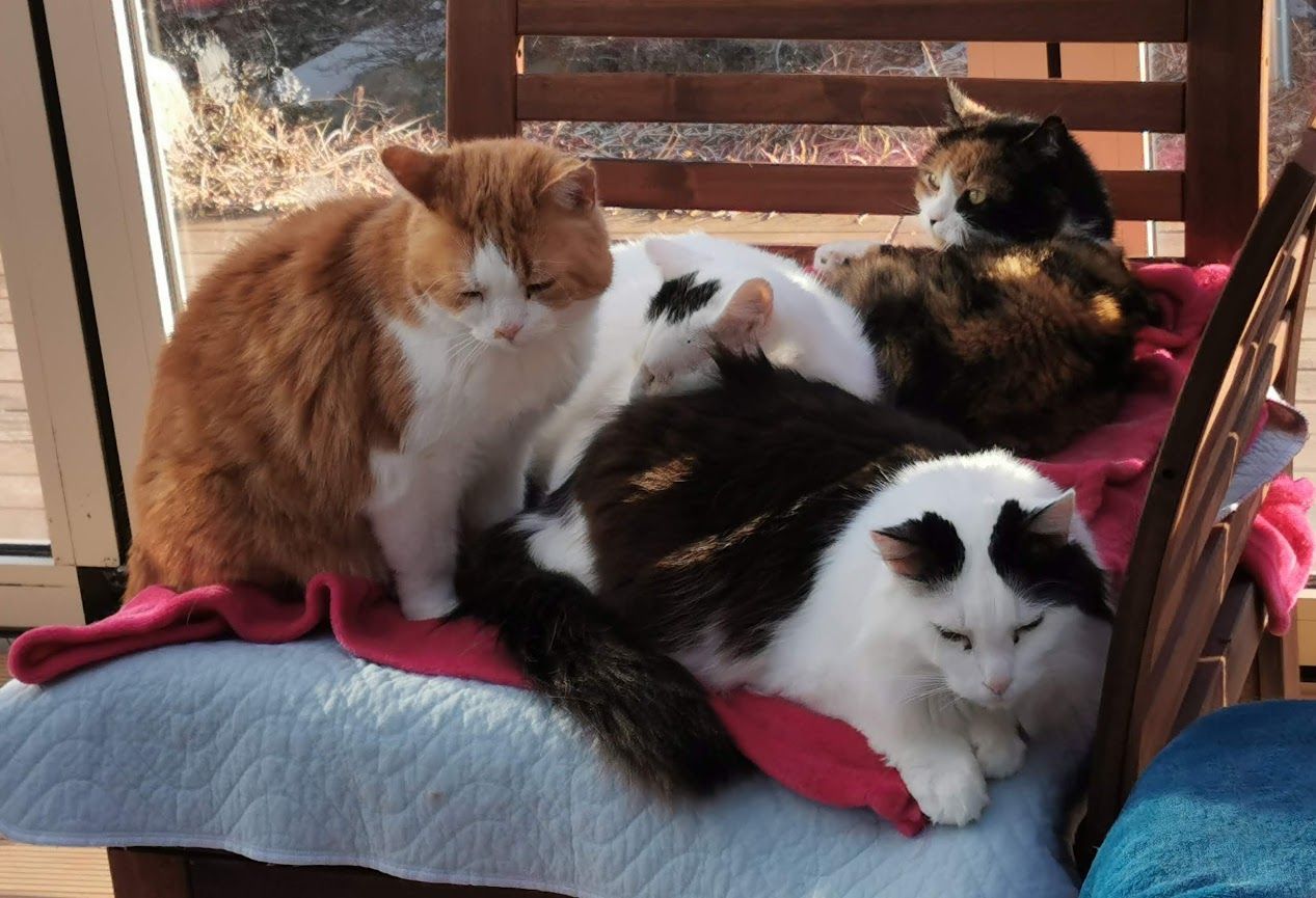 Wir haben uns lange überlegt, ob wir einen weiteren Vermittlungsversuch wagen oder ob wir eine Integration in unsere Gruppe versuchen sollen. Wir haben uns für die zweite Variante entschieden und für Mascha scheint es so zu stimmen. Unsere alt eingesessenen Samtpfoten müssen sich nun wohl oder übel damit abfinden, dass sie eine neue Chefin bekommen haben und gehen ihr bestmöglichst aus dem Weg.