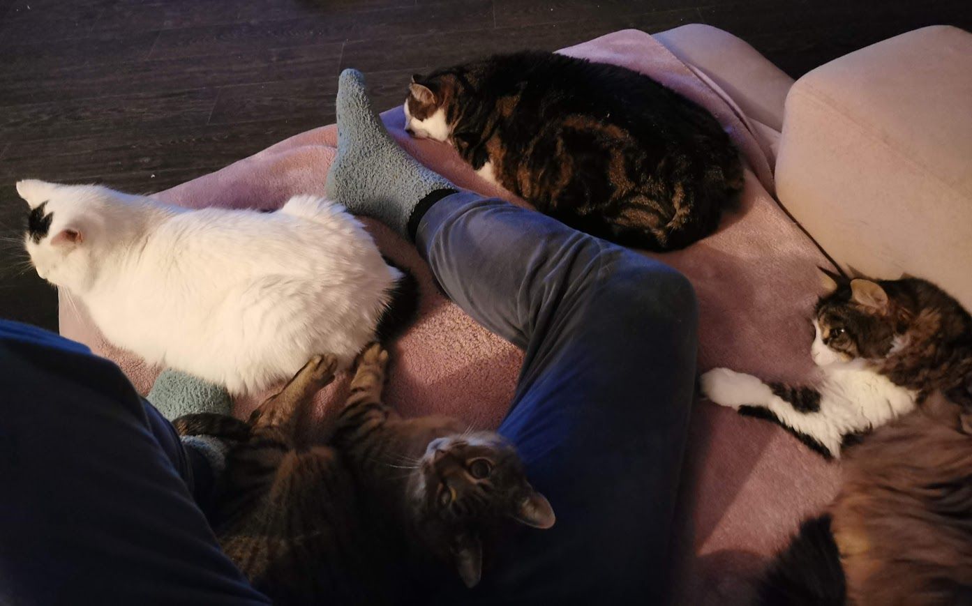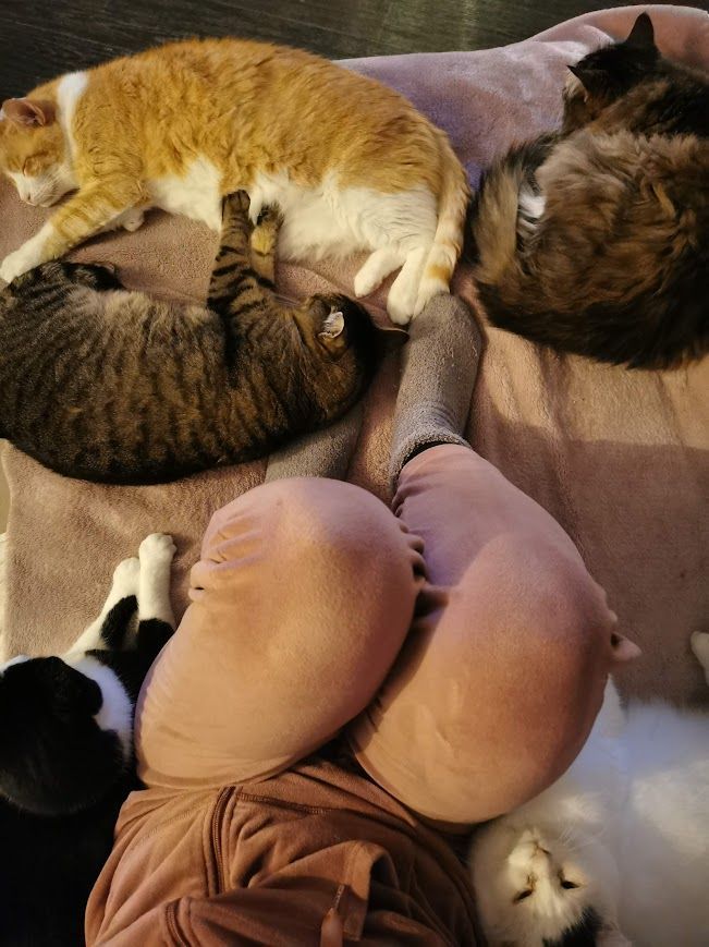 Vergangenes Wochenende bemerkten wir, dass im Sand der Katzen-WC immer ganz wenig Blut war. Bei 14 Katzen ist es nicht ganz einfach herauszufinden, von welcher Katze dieses stammt. Wir hatten Red im Verdacht, da er ja bereits Blasenprobleme hatte und auch operiert werden musste. Da unser Zaun geflickt werden musste, durften die Katzen nicht raus und dies war unser Glück im Unglück. Denn sonst hätten wir dies gar nicht bemerkt. Am Sonntag gegen Abend fiel mir auf, dass Milo innert weniger Minuten mehrfach zum Kistchen ging, aber anschliessend nichts drin war, eben ausser einem kleinen Tröpfchen Blut im Sand. Da war mir klar, dass es von ihm sein muss. Sofort rief ich im Notfall an und wollte wissen, ob ich sofort kommen soll oder ob ich noch bis am Montag morgen warten kann. Die Tierärztin riet mir vorerst Metacam zu verabreichen und zu schauen, ob es in den folgenden Stunden besser wird, ansonsten solle ich nochmals anrufen. Glücklicherweise konnte ich ihm das Medi verabreichen. Ich habe dann Milo nicht mehr zum Kistchen gehen sehen und er lag den halben Abend neben mir auf dem Sofa und schmuste wie ein Weltmeister. Es war im nichts anzumerken, dass er sich schlecht fühlte oder irgendetwas nicht stimmte. So wartete ich bis am Montag morgen und fuhr wie am Abend zuvor mit der Tierärztin verabredet ganz früh zu ihr in die Klinik. Auch sie tippte vorerst aufgrund der Schilderungen auf ein Blasenproblem und wir waren guter Dinge, Milo schnell helfen zu können. Wir vereinbarten, dass Urin und Blut angeschaut sowie ein Ultraschall und ein Röntgen gemacht wird. Vor dem Mittag rief sie mich dann an und klärte mich auf, dass auch zu ihrer Überraschung nicht die Blase das Problem sei, denn diese sei in Ordnung. Sorgen würden ihr aber die extrem hohen nicht mehr messbaren Nierenwerte machen sowie die im Ultraschall und Röntgen sichtbaren Veränderungen des Darms und die geschwollenen Lymphknoten. Wir vereinbarten, dass Milo über Nacht in der Praxis bleibt, Infusion bekommt und sie überwacht, ob er isst und Urin und Stuhl absetzen kann. Am nächsten Morgen informierte sie mich, dass er weder gegessen hatte noch Urin oder Kot absetzte. Sie machte ein Kontrollröntgen und sedierte ihn dazu. Dabei verlor Milo blutigen und eitrigen Kot. Aufgrund der aus allen Abklärungen getroffenen Erkenntnisse, kam sie zum Schluss, dass Milo Darm- und Lympfdrüsenkrebs hat. Eine Chemotherapie für ein so scheues Büsi, wäre zuviel Stress gewesen. Deshalb haben wir uns sehr schweren Herzens zusammen mit der Tierärztin entschieden, Milo am 20. Februar 2024 gehen zu lassen.