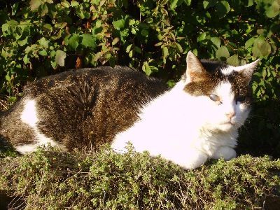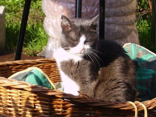 Martheli habe ich Ende April 2007 vom Aarg. Tierschutz übernommen. Sie wurde dort als Findelkatze abgegeben. Sie war geschätzte 15 Jahre aufwärts, hatte eine verkürzten Schwanz, war blind und hatte noch drei fühlbare Schrotkugeln im Körper. Martheli genoss die Ausflüge in meinem geschützen und sicheren Garten und lag gerne im Gras und genoss die Sonne.