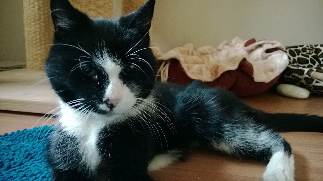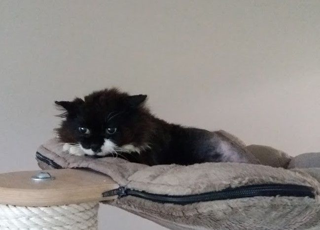 Kater Micosch haben wir am 25. Juni 2016 aus einem Privathaushalt übernommen. Er war damals schon ca. 17 Jahre alt. Seine Halterin hatte uns kontaktiert, ob wir ihn übernehmen könnten, da er in der neuen Wohnung so unruhig sei und immer raus wolle, was nicht mehr ginge, weil sie jetzt in einem oberen Stockwerk wohnen würde. Wir besuchten Micosch in seinem Zuhause und es war uns sofort klar, dass Micosch dringend in tieräztliche Obhut musste. Er war, obwohl eine kurzhaarige Katze, total verfilzt und lief ruhelos in der Wohnung umher. Einerseits den Ausgang suchend und andererseits um den kleinen ihm nachrennenden Kindern auszuweichen. Wir sicherten der Halterin die Aufnahme von Micosch zu und so zog er nach dem Tierarztbesuch bei uns ein. Er wurde von seinem Filzpanzer befreit und unsere Vorahnung bestätigte sich. Micosch litt unter einer Überfunktion der Schilddrüse, welche bei uns behandelt wurde. Er blühte bei uns nochmals richtig auf und verstand sich von Anfang an mit allen anderen Katzen blendend. Sein sanftes und soziales Wesen machte ihn zu einer ganz besonderen Samtpfote. Micosch durfte bei uns noch etwas mehr als ein Jahr ein glückliches Katzenleben geniessen. Er liebte die Ausflüge in unserem gesicherten Garten genauso wie die Kuscheleinheiten und Nickerchen auf dem Sofa. Leider verschlechterte sich sein Zustand aber zusehends, so dass er am 4. Oktober 2017 seinen Weg in den Katzenhimmel angetreten hat. Wir vermissen Micosch sehr.