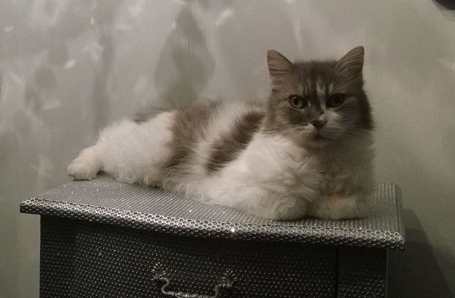 Cindy habe ich 2003 von einer Züchterin übernommen. Sie musste die Katze zurücknehmen, da sie vom Kind der damaligen Besitzerin ständig am Schwanz herumgetragen wurde und entsprechend eingeschüchtert war. Mittlerweile ist aus ihr eine sehr verschmuste und anhängliche Schönheit geworden. Auch Cindy ist eine Persönlichkeit und ein kleines Prinzesschen für sich.