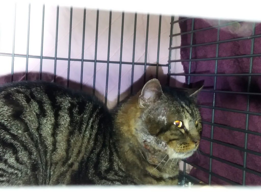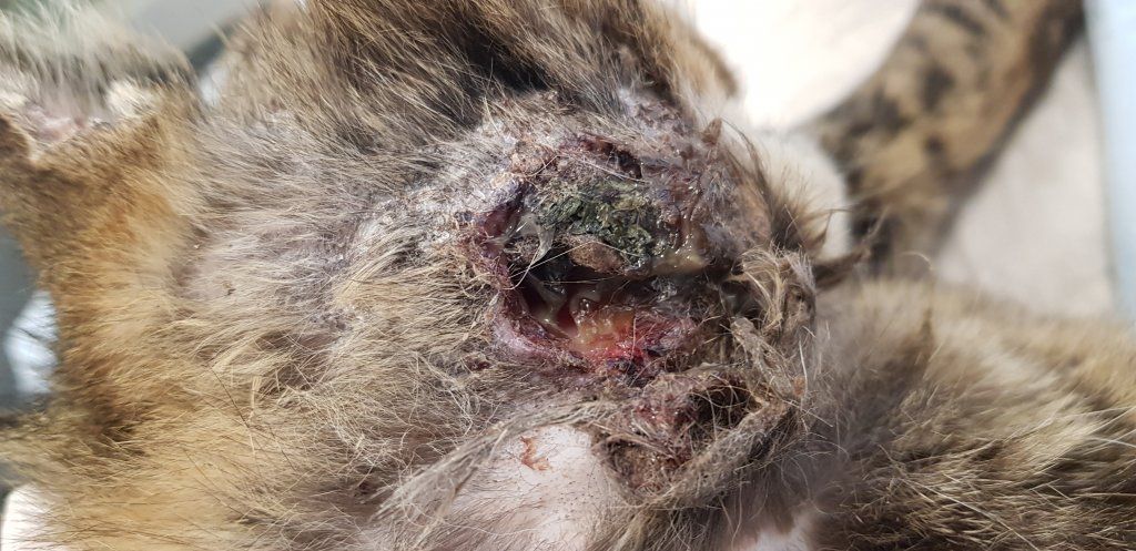 Camillo kam am 12. März 2019 zu uns. Er stammte aus einer unserer Einfangaktionen auf einem Industrieareal, welches an eine riesige Schrebergartenanlage angrenzt. Camillo war unkastriert und hatte einen grossen total vereiterten Abszess an der Backe als er uns die Falle ging. Dieser wurde behandelt und die Wunde heilte schön ab. Camillo lebte sich bei uns gut ein, war aber scheu und liess sich nicht anfassen. Leider stellte sich im Juli heraus, dass der wohl schon mehrere Monate vorhandene Abszess tiefere Spuren hinterlassen hatte und der Eiter schon grössere Teile des Kieferknochens aufgefressen hatte. Wir mussten Camillo am 5. Juli 2019 leider erlösen. Wir trösten uns aber im Wissen, dass Camillo nicht irgendwo draussen elendiglich zugrunde gehen musste.