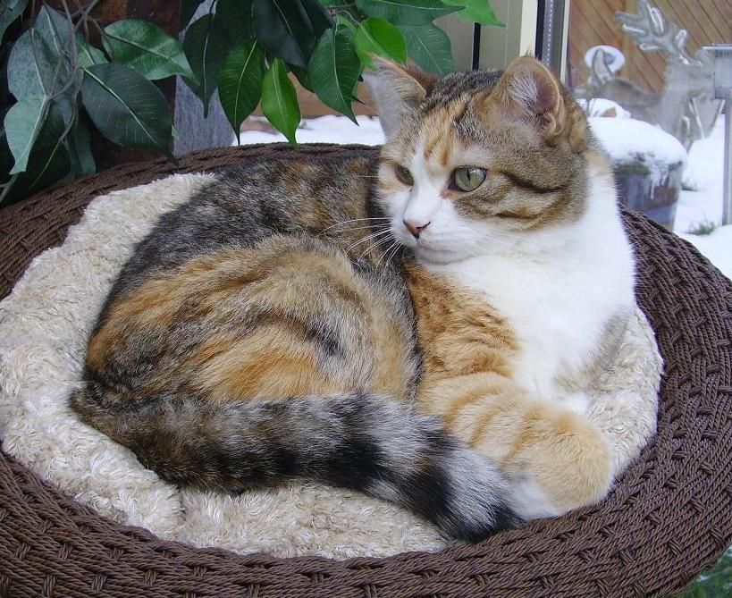 Bienchen kam im Jahre 2000 aus einem befreundeten Tierheim, in dem ich damals ehrenamtlich aushalf. Ursprünglich ist sie eine italienische Strassenkatze. Bienchen ist sehr verschmust und mag Besuch, dann gibt es immer extra Streicheleinheiten. Früher war sie sehr sozial zu ihren Artgenossen, mittlerweile hat sie sich allerdings zu einer kleinen Prinzessin entwickelt, die sich erfolgreich gegen die Aufnahme von weiteren Katzen in meiner eigenen Gruppe zu wehren weiss. Vor allem Kätzinnen sind ihr ein Dorn im Auge und wenn sie dann auch noch Angst zeigen, nützt Bienchen dies sofort aus um zu zeigen wer hier die Herrin im Hause ist.