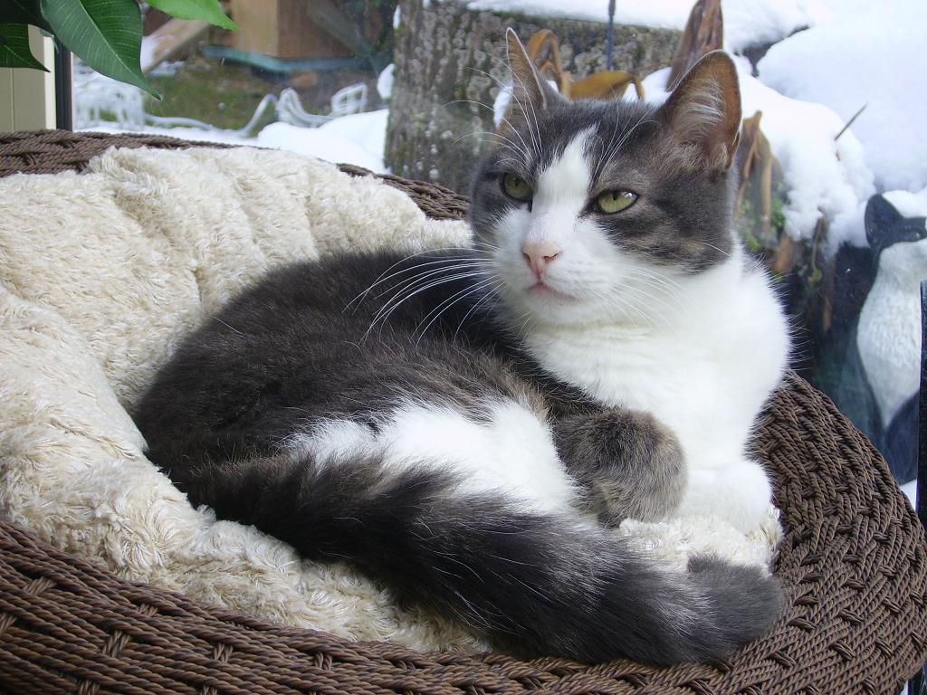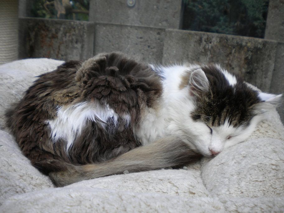Leider durfte Lea die schöne Zeit in Geborgenheit und Wärme nur noch kurze Zeit geniessen. Ihre Nieren waren bereits im Herbst bei ihrer Ankunft angeschlagen. Obwohl es lange den Anschein machte, dass es ihr gut ging, verschlechterte sich ihr Zustand in den letzten Wochen rapide. Sie nahm immer mehr ab und verweigerte am Schluss das Essen, so dass wir sie erlösen mussten. Sie folgte Zwurzel am 14. Februar 2012 in den Katzenhimmel.